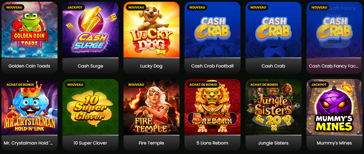 Plus de flexibilité : Utilisez vos bonus pour tenter votre chance sur une variété de jeux passionnants.